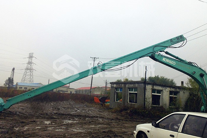 兩節(jié)伸縮臂是雙壹機械2005年自主研發(fā)的突破性產(chǎn)品,被多家同行模仿制造,從未被超越;臂長度19米,采用高噸位的三機聯(lián)動折彎設備折成U型,雙U型對接的焊接方式。