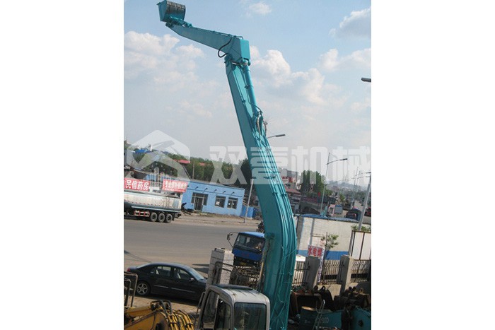 加長臂:加長臂是我們最常見,使用時(shí)間更早的大小臂加長臂,不需要伸縮缸控制。它通過大臂、小臂同時(shí)加長,配帶小挖斗,擴(kuò)大機(jī)械的工作范圍。
